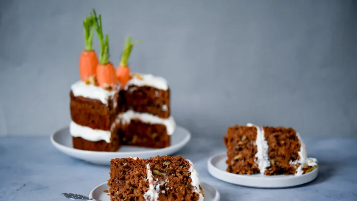 Deze taart met walnoten en vanille-kokoscrème ziet er niet alleen heel lekker uit, hij is het ook écht. Daarnaast is het een pronkstuk op tafel én past het helemaal in de paassfeer, want niet alleen wij, maar ook paashazen zijn gek op wortels. Aan de slag!
