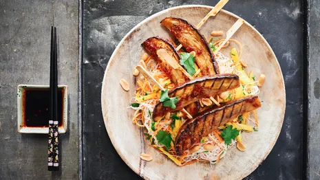 Vergeet vlees op spies, groenten op spies is veel beter! Een groente die gezond en perfect is voor op de barbecue, is aubergine. Voor dit recept leg je die groente gemarineerd en wel op het rooster en maak je vervolgens een heerlijke salade.