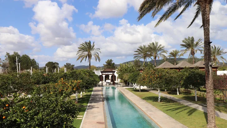 Overal waar ik kijk, zie ik bomen met feloranje sinaasappels. Het is wel begrijpelijk dat Atzaró Hotel & Spa van oorsprong een orange farm is. De familie Guasch runt het bedrijf al generaties lang, al is de belangrijkste functie tegenwoordig agriturismo, oftewel, een landelijk gelegen hotel plus een boerderij erbij. Zij die niet naar Ibiza komen om (enkel) te feesten, zoeken deze zen-oase, gelegen op een verborgen stuk midden op Ibiza, maar wat graag op. Zo zijn grote sterren als Kate Hudson, Rihanna en Shakira hier vaak terugkerende gasten. De palmbomen, grote witte relaxbedden, felblauwe baden en de rijk geurende bloemen zorgen dat je meteen alle stress van je af voelt glijden zodra je onder de bogen door het hotel binnenstapt. Mijn vriendin Sylvia van Driessche en ik verblijven in een van de privéhuisjes, die zijn ingericht in authentieke Ibiza-stijl met veel wit, hout en bogen. De badkamer is een privéspa op zich, met zijn enorme badkuip en vele luxe beautyproducten. En natuurlijk staat daar een fles Atzaró Orangello klaar, gemaakt van sinaasappels van het eigen landgoed. Voor later... Eerst hebben we een lunch op La Veranda, het zonnige finca-terras, ook weer in authentieke stijl met witte doeken en grote potten met oranjebloesem. Het middageten is mediterraans, veel producten komen van plaatselijke boeren en alle groenten komen uit eigen moestuin. In augustus wordt er een nog veel grotere moestuin bij het hotel geopend, waar gasten doorheen kunnen wandelen. Het idee is om in de tuin ook filmvoorstellingen te gaan organiseren onder de sprookjesachtige sterrenhemel.