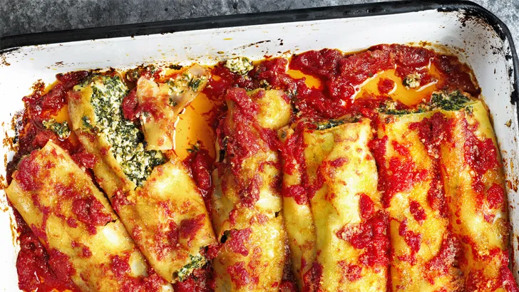 Vandaag voor de afwisseling een gerecht uit de Italiaanse keuken: cannelloni met spinazie, ricotta en tomatensaus.
