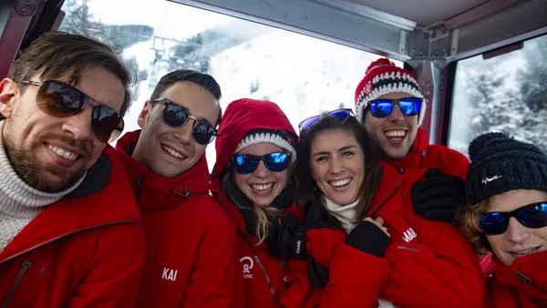 Mattie en Marieke skiën beide al even. Mattie al zeker zeventien jaar en Marieke ging vier jaar geleden met het Q-hotel voor het eerst op wintersport. Als ervaren wintersporters hebben ze vast een favoriet moment, toch? 'Het eerste biertje na een lange ski-dag. Dat is lekker,' antwoordt Mattie. Marieke voelt zich vooral gelukkig door de omgeving: 'Een blauwe lucht, de zon die op je gezicht schijnt en afdalingen die heel lekker gaan. Dan kan ik me zo gelukkig voelen, want het enige waar je dan aan denkt, is skiën.'