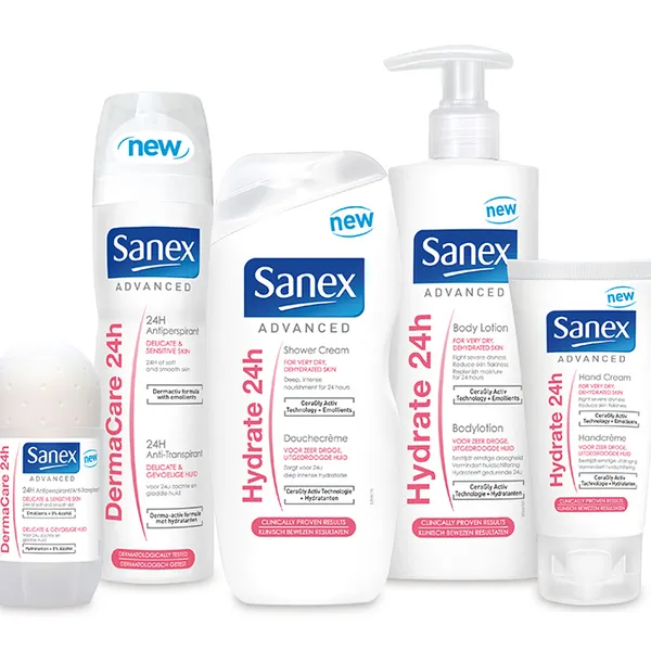 Speciaal voor de veeleisende huid heeft Sanex in samenwerking met dermatologen een unieke lijn ontwikkeld die een complete oplossing biedt voor de drie vaak voorkomende huidtypes en de daarbij horende problemen succesvol bestrijdt: Sanex Advanced. De productlijn bestaat uit douchegels, deodoranten, bodylotions en handcrèmes.