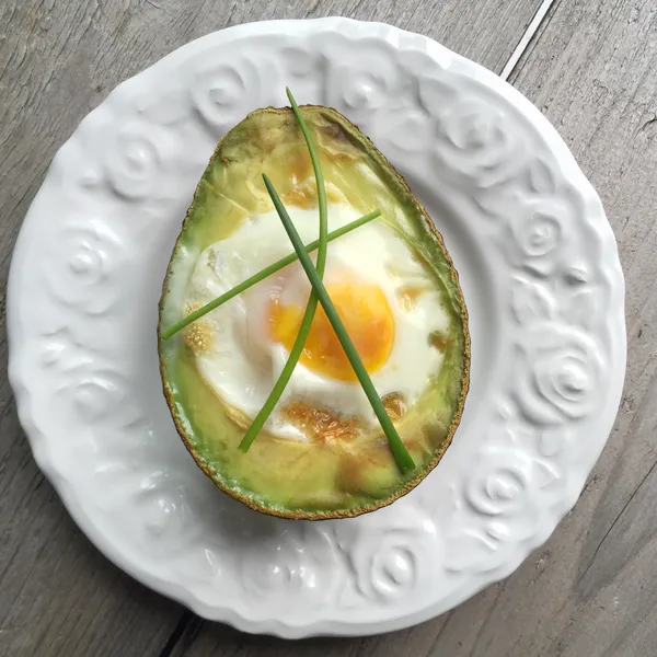 Dit heb je nodig voor twee stuks - 1 rijpe avocado - 2 kleine eieren - Snuf zout - Eventueel wat verse bieslook