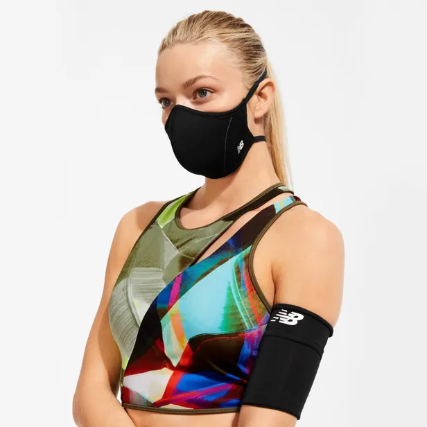 Het New Balance Active-mondkapje is speciaal voor fitness- en prestatiegedreven-activiteiten. Het herbruikbare mondkapje bestaat uit drie lagen ademende stof (een mix van polyester, polypropyleen en spandex) met een vocht-absorberende werking. Het masker is voorzien van een reflecterend logo, bandjes die achter het hoofd kunnen worden vastgemaakt en een vormbare neusclip om een goede pasvorm te garanderen. Het voorgevormde ontwerp laat ruimte voor ademhaling en houdt het masker van de mond af. Je bestelt 'em hier.
