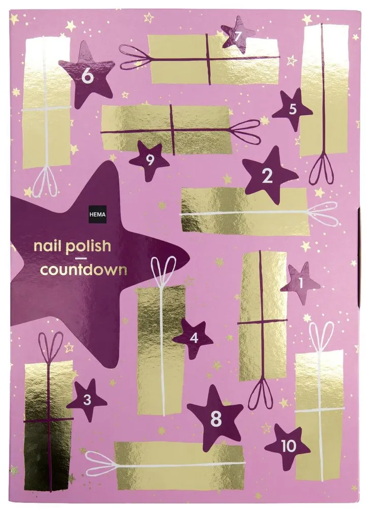 HEMA komt dit jaar met een heuse nail polish countdown kalender. Met deze kalender tel je de laatste tien dagen van december af, om de maand nog feestelijker te maken. In de kalender vind je prachtige long lasting-nagellaken, maar ook twee (glitter) topcoats met keratine op plantbasis en rozenolie. Leuk om te geven en om te krijgen. Je shopt hem hier.