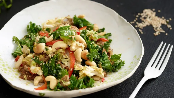 1. Snijd de Chinese kool, boerenkool, paprika, gember en chilipeper in stukjes. 2. Doe deze samen met Pulled Oats, cashewnoten en sesamzaadjes in een wok. 3. Bak het geheel in wat olie om de groenten te verwarmen. 4. Breng op smaak met zwarte peper en zout.