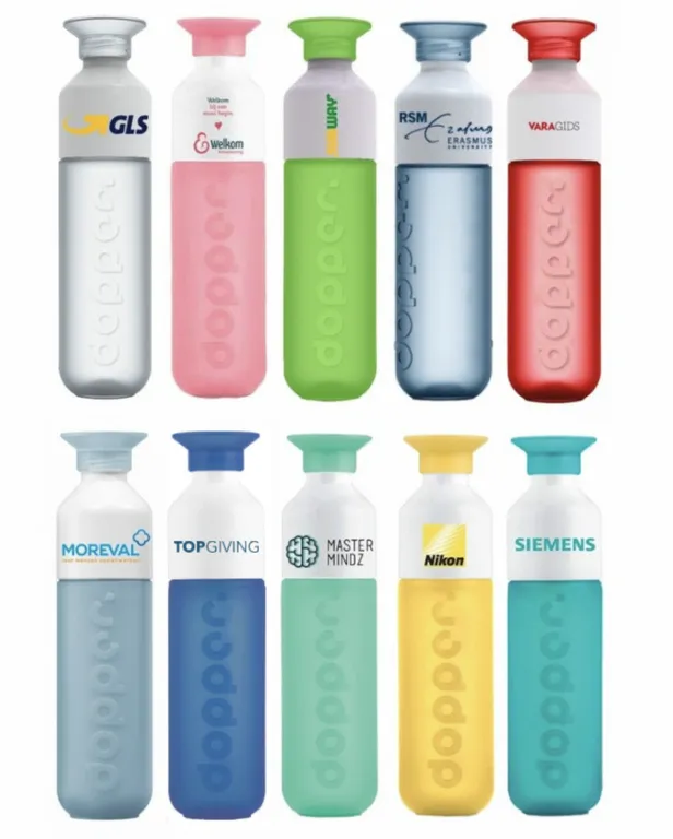 Hoewel veel van ons weten dat je elke dag minimaal twee liter water moet drinken, blijkt dit in de praktijk lastig haalbaar. Vooral voor mensen die een kantoorbaan hebben. De reden? Men vergeet, of heeft geen zin, om steeds van zijn werkplek te komen om een glas te moeten bijvullen. Een kleurrijke Dopper-waterfles is daarom een geschikt relatiecadeau. Stimuleert men om in de dagelijkse waterbehoefte te voorzien en scheelt heen-en-weer lopen naar de kraan. Tip: laat je Dopper fles bedrukken met een persoonlijke (dank)boodschap.